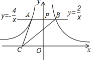 如圖所示,過y軸正半軸上的任意一點P,作x軸的平行線,分別與反比例函數(shù)數(shù)學公式的圖象交于點A和點B,若點C是x軸上任意一點,連接AC、BC,則△ABC的面積為________.