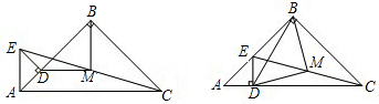 已知:△ABC和△ADE都是等腰直角三角形,其中∠ABC=∠ADE=90°,點M為EC的中點.