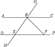 如圖,AC∥DF,GH是截線.∠CBF=40°,∠GBC=80°.求∠HBF,∠BFP,∠BED,∠BEF.