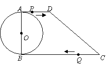如圖,在直角梯形ABCD中,AD∥BC,∠ABC=90º,AB=12cm,AD=8cm,BC=22cm,AB為⊙O的直徑,動點(diǎn)P從點(diǎn)A開始沿AD邊向點(diǎn)D以1cm/s的速度運(yùn)動,動點(diǎn)Q從點(diǎn)C開始沿CB邊向點(diǎn)B以2cm/s的速度運(yùn)動,P、Q分別從點(diǎn)A、C同時(shí)出發(fā),當(dāng)其中一點(diǎn)到達(dá)端點(diǎn)時(shí),另一個(gè)動點(diǎn)也隨之停止運(yùn)動.設(shè)運(yùn)動時(shí)間為t(s).