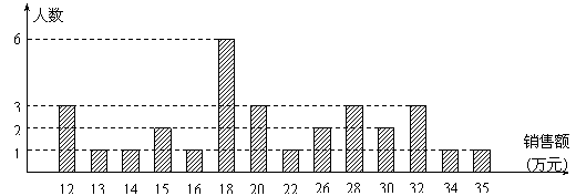 某商場服裝部為了調(diào)動營業(yè)員的積極性,決定實(shí)行目標(biāo)管理,即確定一個月銷售目標(biāo),根據(jù)目標(biāo)完成的情況對營業(yè)員進(jìn)行適當(dāng)?shù)莫剳停疄榱舜_定一個適當(dāng)?shù)哪繕?biāo),商場統(tǒng)計了每個營業(yè)員在某月的銷售額,并整理得到如下統(tǒng)計圖(單位:萬元).請分析統(tǒng)計數(shù)據(jù)完成下列問題.