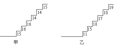 某旅游景點的小山有上坡的兩小段臺階,臺階高度數(shù)據(jù)如下圖所標(biāo)。請你用所學(xué)過的有關(guān)統(tǒng)計知識(平均數(shù)、中位數(shù)、方差和極差)回答下列問題。