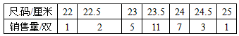 一家鞋店對(duì)上周某一品牌女鞋的銷(xiāo)售量統(tǒng)計(jì)如下:
