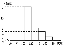 某中學(xué)對(duì)全校學(xué)生60秒跳繩的次數(shù)進(jìn)行了統(tǒng)計(jì),全校平均次數(shù)是100次.某班體育委員統(tǒng)計(jì)了全班50名學(xué)生60秒跳繩的成績(jī),列出的頻數(shù)分布直方圖如下(每個(gè)分組包括左端點(diǎn),不包括右端點(diǎn)):
