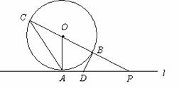 如圖,直線l切⊙O于點A,點P為直線l上一點,直線PO交⊙O于點C、B,點D在線段AP上,連結DB,且AD=DB.