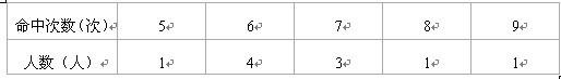 某校10名籃球隊(duì)隊(duì)員進(jìn)行投籃命中率測(cè)試,每人投籃10次,實(shí)際測(cè)得成績(jī)記錄如下表: