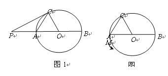 (2)在圖1中,P為直徑BA延長線上的一點,當(dāng)CP與⊙O相切時,求PO的長;