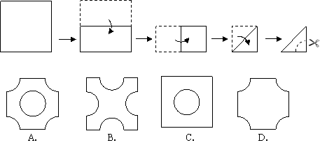 如圖,將一正方形紙片按下列順序折疊,然后將最后折疊的紙片沿虛線剪去小扇形,將紙片展開,得到的圖形是( )