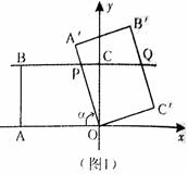如圖1,在平面直角坐標系中,O為坐標原點,點A的坐標為(-8,0),直線BC經(jīng)過點B(-8,6),將四邊形OABC繞點O按順時針方向旋轉(zhuǎn)α度得到四邊形OA′B′C′,此時直線OA′、直線B′C′分別與直線BC相交于P、Q.