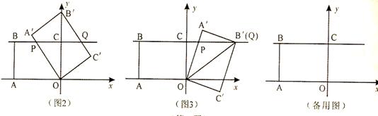 ②如圖3,當四邊形OA′B′C′的頂點B′落在直線BC上時,求ΔOPB′的面積.