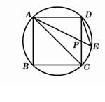 如圖,在邊長(zhǎng)為2的圓內(nèi)接正方形ABCD中,AC是對(duì)角線,P為邊CD的中點(diǎn),延長(zhǎng)AP交圓于點(diǎn)E.