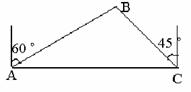 海船以5海里/小時的速度向正東方向行駛,在A處看見燈塔B在海船的北偏東60°方向,2小時后船行駛到C處,發(fā)現(xiàn)此時燈塔B在海船的北偏西45方向,求此時燈塔B到C處的距離。