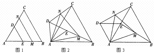 (2)當(dāng)△ADE繞A點(diǎn)旋轉(zhuǎn)到圖3的位置時(shí),△AMN是否還是等邊三角形?若是,請(qǐng)給出證明,并求出當(dāng)AB=2AD時(shí),△ADE與△ABC及△AMN的面積之比;若不是,請(qǐng)說明理由.