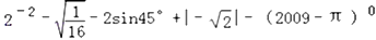 (2)﹣(π﹣1)0﹣2sin45°+tan45°=(    )。