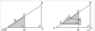 | 如圖,有兩個形狀完全相同的直角三角形ABC和EFG疊放在一起(點A與點E重合),已知AC=8cm,BC=6cm,∠C=90°,EG=4cm,∠EGF=90°,O是△EFG斜邊上的中點. 如圖,若整個△EFG從圖的位置出發(fā),以1cm/s的速度沿射線AB方向平移,在△EFG平移的同時,點P從△EFG的頂點G出發(fā),以1cm/s的速度在直角邊GF上向點F運動,當(dāng)點P到達點F時,點P停止運動,△EFG也隨之停止平移.設(shè)運動時間為x(s),F(xiàn)G的延長線交AC于H,四邊形OAHP的面積為y(cm2)(不考慮點P與G、F重合的情況). |