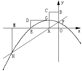 如圖,點(diǎn)O是坐標(biāo)原點(diǎn),點(diǎn)A(n,0)是x軸上一動(dòng)點(diǎn)(n<0),以AO為一邊作矩形AOBC,點(diǎn)C在第二象限,且OB=2OA,矩形AOBC繞點(diǎn)A逆時(shí)針旋轉(zhuǎn)90°得矩形AGDE,過(guò)點(diǎn)A的直線(xiàn)y=kx+m交y軸于點(diǎn)F,F(xiàn)B=FA,拋物線(xiàn)y=ax2+bx+c過(guò)點(diǎn)E、F、G且和直線(xiàn)AF交于點(diǎn)H,過(guò)點(diǎn)H作HM⊥x軸,垂足為點(diǎn)M。