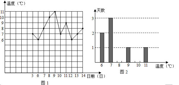 圖1是某市2007年2月5日至14日每天最低氣溫的折線統(tǒng)計圖。