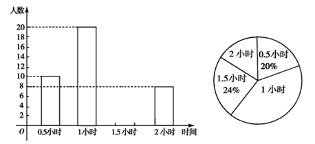 為增強(qiáng)學(xué)生的身體素質(zhì),教育行政部門規(guī)定學(xué)生每天參加戶外活動(dòng)的平均時(shí)間不少于1小時(shí)。為了解學(xué)生參加戶外活動(dòng)的情況,對(duì)部分學(xué)生參加戶外活動(dòng)的時(shí)間進(jìn)行抽樣調(diào)查,并將調(diào)查結(jié)果繪制作成如下兩幅不完整的統(tǒng)計(jì)圖,請(qǐng)你根據(jù)圖中提供的信息解答下列問題: