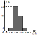 | 請根據(jù)以上圖表提供的信息,解答下列問題: (1)表中和所表示的數(shù)分別為:a=_______,b=________; (2)請在圖中,補(bǔ)全頻數(shù)分布直方圖; (3)如果把成績在90分以上(含90分)定為優(yōu)秀,那么該市24000名九年級考生數(shù)學(xué)成績?yōu)閮?yōu)秀的學(xué)生約有多少名? |