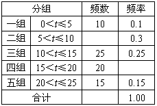 | 工商銀行為改進(jìn)在上下班高峰的服務(wù)水平,隨機(jī)抽樣調(diào)查了部分該行顧客在上下班高峰時從開始排隊到辦理業(yè)務(wù)所用的時間t(單位:分)。 下面是這次調(diào)查統(tǒng)計分析得到的頻數(shù)分布表和頻數(shù)分布直方圖 | ||||||||