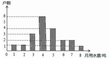 | 為宣傳節(jié)約用水,小明隨機(jī)調(diào)查了某小區(qū)部分家庭5 月份的用水情況,并將收集的數(shù)據(jù)整理成如下統(tǒng)計(jì)圖. (1 )小明一共調(diào)查了多少戶家庭? (2 )求所調(diào)查家庭5 月份用水量的眾數(shù)、平均數(shù); (3 )若該小區(qū)有400 戶居民,請(qǐng)你估計(jì)這個(gè)小區(qū)5 月份的用水量. |