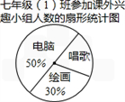 如圖是七年級(1)班參加課外興趣小組人數(shù)的扇形統(tǒng)計圖,則表示唱歌興趣小組人數(shù)的扇形的圓心角度數(shù)是