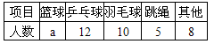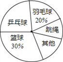 | 為了解“陽光體育”活動(dòng)情況,我市教育部門在市三中2000名學(xué)生中,隨機(jī)抽取了若干學(xué)生進(jìn)行問卷調(diào)查(要求每位學(xué)生只能填寫一種自己喜歡的活動(dòng)),并將調(diào)查的結(jié)果繪制成如圖的兩幅不完整的統(tǒng)計(jì)圖: |