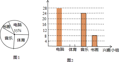 (2)在圖2中,將“體育”部分的圖形補(bǔ)充完整;