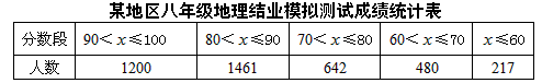 某地區(qū)八年級(jí)地理會(huì)考模擬測(cè)試成績(jī)統(tǒng)計(jì)表