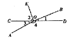 如圖所示,已知∠1=30°,OE平分∠BOC,則∠2=( ),∠3=( ),∠4=( )。