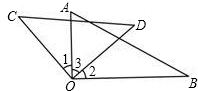 如圖,將一副三角板的直角頂點重合,可得∠1=∠2,理由是等角(或同角)的( );若∠3=50°,則∠COB=( )。