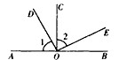如圖,已知∠AOC,∠BOD都是直角,∠COD=38°,求∠1,∠2和∠AOB的度數(shù)。