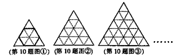 把邊長(zhǎng)為3的正三角形各邊三等分,分別得到圖①,圖中含有1個(gè)邊長(zhǎng)是1的正六邊形;把邊長(zhǎng)為4的正三角形各邊四等分,分別得到圖②,圖中含有3個(gè)邊長(zhǎng)是1的正六邊形;把邊長(zhǎng)為5的正三角形各邊五等分,分別得到圖③,圖中含有6個(gè)邊長(zhǎng)是1的正六邊形;……以此規(guī)律,把邊長(zhǎng)為7的正三角形各邊七等分,并按同樣的方法分割,得到的圖形中含有( )個(gè)邊長(zhǎng)是1的正六邊形.
