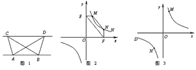 (k>0)的圖象上,過點M作ME⊥y軸,過點N作NF⊥x軸,垂足分別為E,F(xiàn).試證明:MN∥EF.② 若①中的其他條件不變,只改變點M,N的位置如圖3所示,請判斷 MN與EF是否平行.并說明理由。