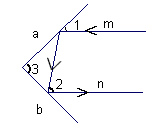 | (1)如圖,一束光線m射到平面鏡上,被a反射到平面鏡b上,又被b鏡反射,若被b反射出的光線n與光線m平行,且∠1=50°,則∠2= ( ),∠3= ( ) (2)在(1)中,若∠1=55°,則∠3= ( ),若∠1=40°,則∠3= ( ) (3)由(1)、(2)請(qǐng)你猜想:當(dāng)兩平面鏡a、b的夾角∠3= ( )時(shí),可以使任何射到平面鏡a上的光線m,經(jīng)過(guò)平面鏡a、b的兩次反射后,入射光線m與反射光線n平行?請(qǐng)說(shuō)明理由。 |