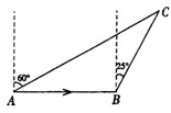 已知:如下圖,一輪船在海上往東行駛,在A處測(cè)得燈塔C位于北偏東60°,在B處測(cè)得燈塔C位于北偏東25°,求∠ACB。