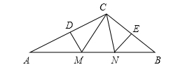 | 如圖,已知DE垂直平分AB,分別交AB、BC于D、E兩點(diǎn),AE平分∠BAC,∠B=30°,BE=4,則AC= _________ 。 |