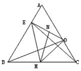 | (1)觀察與發(fā)現(xiàn): 在一次數(shù)學(xué)課堂上,老師把三角形紙片ABC(AB>AC)沿過A點的直線折疊,使得AC落在AB邊上,折痕為AD,展開紙片(如圖①);再次折疊該三角形紙片,使點A和點D重合,折痕為EF,展平紙片后得到△AEF(如圖②),有同學(xué)說此時的△AEF是等腰三角形,你同意嗎?請說明理由。 |