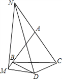 | 如圖,△ABC是等邊三角形,△BDC是頂角∠BDC=120 °的等腰三角形,M是AB延長線上一點,N是CA延長線上一點,且∠MDN=60 °.試探究BM、MN、CN之間的數(shù)量關(guān)系,并給出證明 |