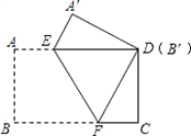 | 把一張矩形紙片(矩形ABCD)按如圖方式折疊,使頂點(diǎn)B和點(diǎn)D重合,折痕為EF。若AB=3cm,BC=5cm,則重疊部分△DEF的面積是( )cm2。 |