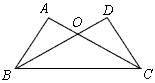 如圖,在△ABC和△DCB中,AC與BD相交于點(diǎn)O,AB=DC,AC=BD。