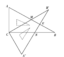 含30°角的直角三角板 ABC(∠B=30°)繞直角頂點(diǎn)C沿逆時(shí)針?lè)较蛐D(zhuǎn)角α(∠α<90°),再沿∠A的對(duì)邊翻折得到△A′B′C,AB與B′C交于點(diǎn)M,A′B′與BC交于點(diǎn)N,A′B′與AB相交于點(diǎn)E。