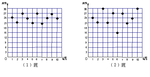 王老師為了了解學(xué)生在數(shù)學(xué)學(xué)習(xí)中常見錯誤的糾正情況,收集整理了學(xué)生在作業(yè)和考試中的常見錯誤,編制了10道選擇題,每題3分,對他所教的初三(1)班和(2)班進(jìn)行了檢測.如圖表示從兩班各隨機(jī)抽取的10名學(xué)生的得分情況: