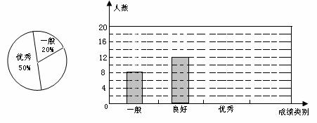 深圳大學(xué)青年志愿者協(xié)會對報名參加2011年深圳大運(yùn)會志愿者選拔活動的學(xué)生進(jìn)行了一次與大運(yùn)知識有關(guān)的測試,小亮對自己班有報名參加測試的同學(xué)的測試成績作了適當(dāng)?shù)奶幚,將成績分成三個等級:一般、良好、優(yōu)秀,并將統(tǒng)計結(jié)果繪成了如下兩幅不完整的統(tǒng)計圖,請你根據(jù)圖中所給信息解答下列問題: