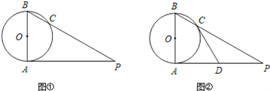 (1)如圖①,若AB=2,∠P=30°,求AP的長(zhǎng)(結(jié)果保留根號(hào));