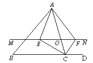 | 如圖,在△ABC中,點O是AC邊上的任意一點(不與點A、C重合),過點O作直線MN∥BC,設MN交∠BCA的角平分線于點E,交∠DCA的角平分線于點F, (1)OE與OF相等嗎?為什么? (2)探索:當點O運動到何處時,四邊形AECF是矩形?為什么? |