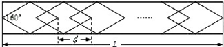 | 學校植物園沿路護欄紋飾部分設計成若干個全等菱形圖案,每增加一個菱形圖案,紋飾長度就增加dcm,如圖所示。已知每個菱形圖案的邊長 (1)若d=26,則該紋飾要231個菱形圖案,則紋飾的長度L為_________cm; (2)當d=20時,若保持(1)中紋飾長度不變,則需要_________。 |