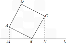 如圖,直線L過(guò)正方形ABCD的頂點(diǎn)B,點(diǎn)A、C到直線L的距離分別是1和2,則正方形的邊長(zhǎng)是( ).