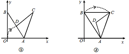 (I)如圖①,當(dāng)旋轉(zhuǎn)后點(diǎn)D恰好落在AB邊上時(shí),求點(diǎn)D的坐標(biāo);