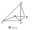 | (3)將圖(a)中的△OAB繞點O順時針旋轉(zhuǎn)一個銳角,得到圖(c),這時(2)中的兩個結(jié)論是否成立?作出判斷并說明理由.若△OAB繞點O繼續(xù)旋轉(zhuǎn)更大的角時,結(jié)論仍然成立嗎?作出判斷,不必說明理由. |